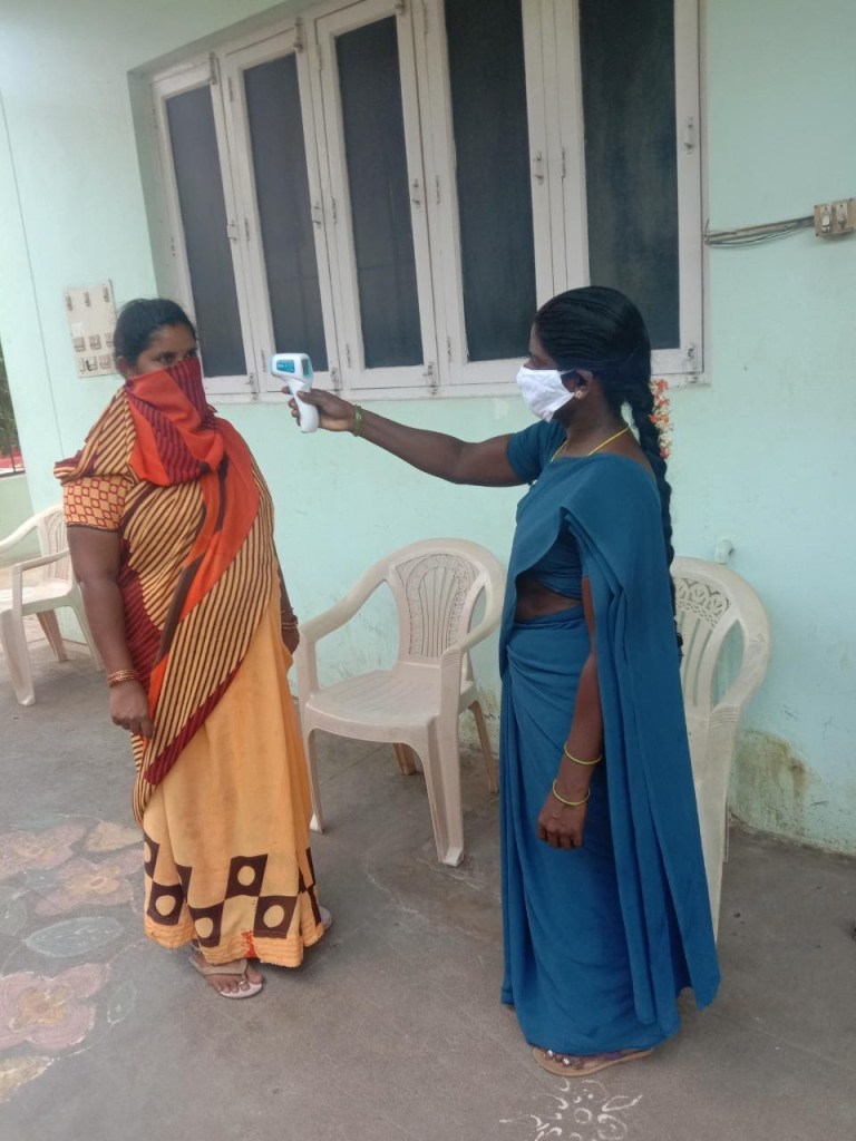 With an infrared thermometer, an electronic blood pressure monitoring kit, a hand sanitizing station that you can operate with your foot, a built in mask made with their own saree, coupled with social distancing, Menno Clinic is open for business on June 1st. There are a few patients, mainly those that require diabetic care show up to the clinic these days. We had to be extra careful as there were reported cases of Covid 19 in Chiluvuru.